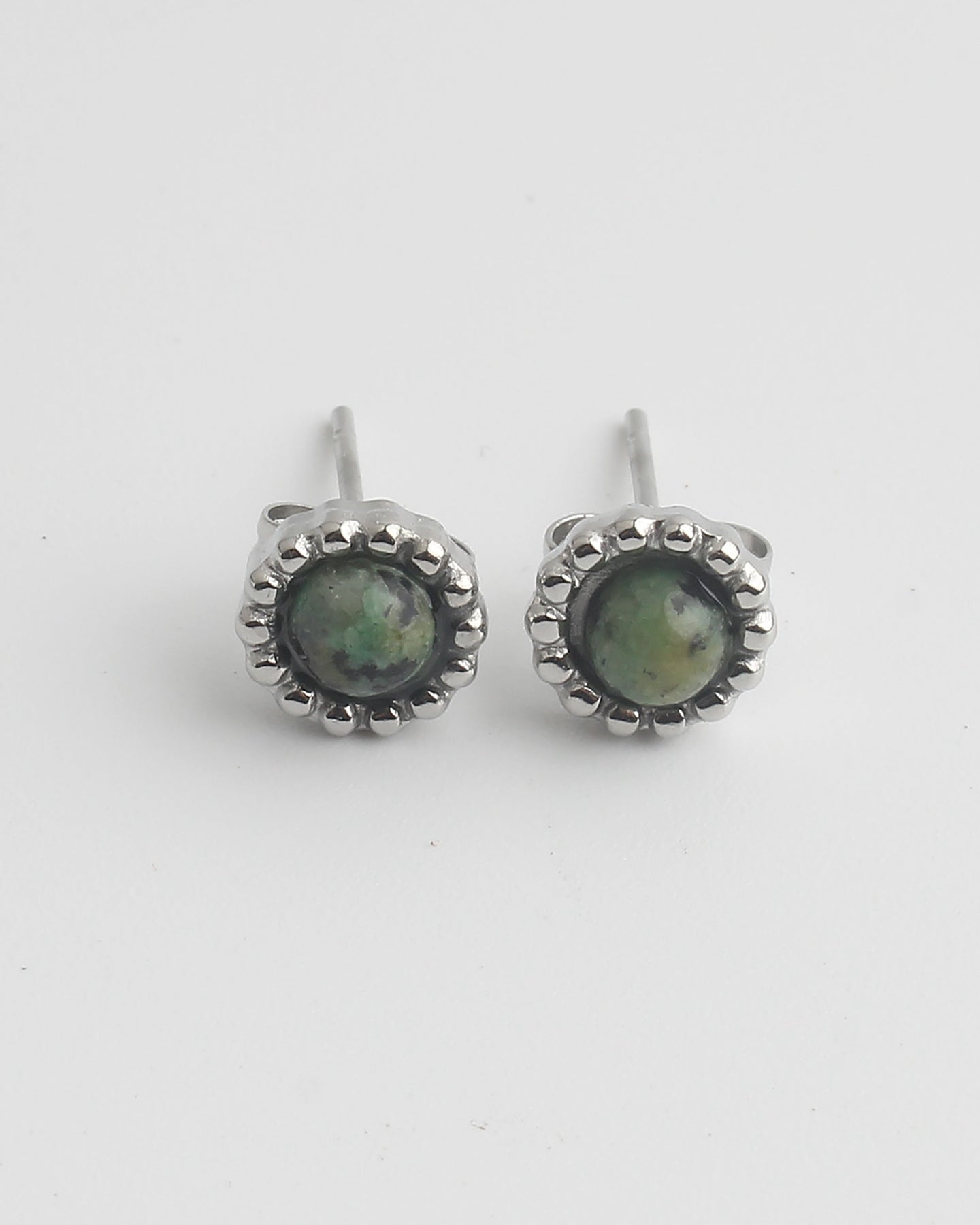 Oorbelletjes verkrijgbaar met verschillende kleuren natuursteen. De oorbellen zijn gemaakt van stainless steel.
