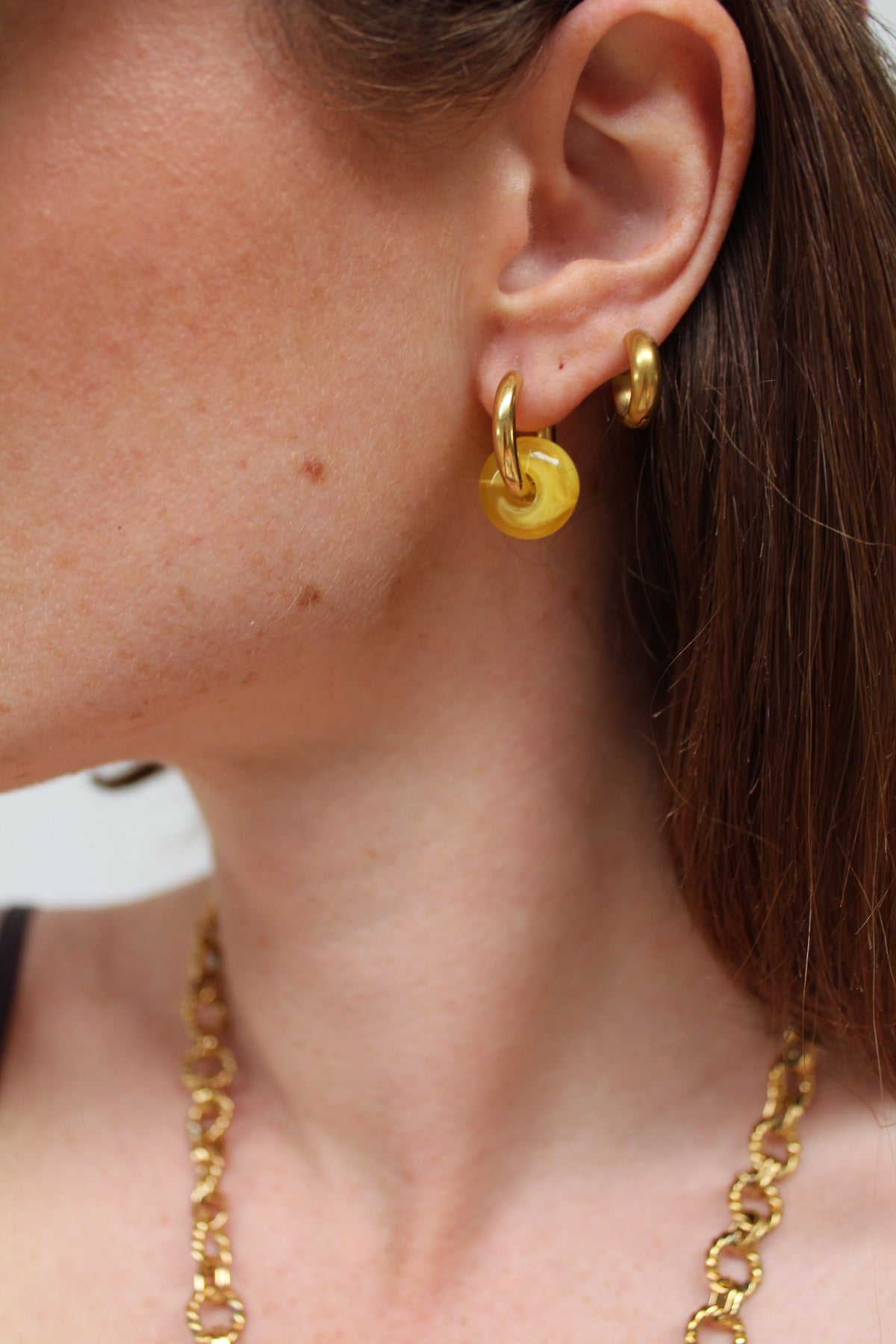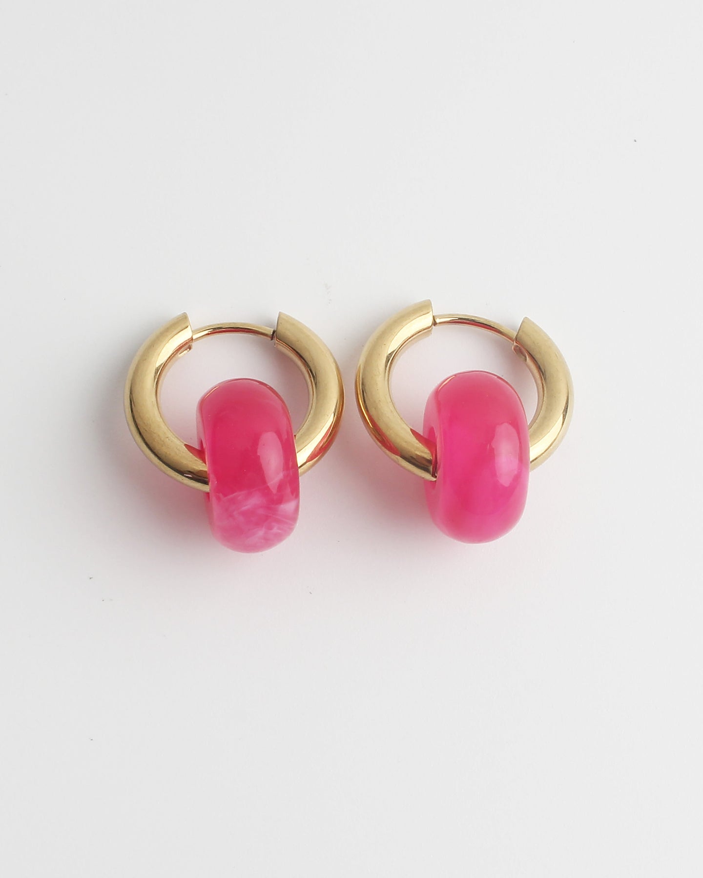Leuke hoops met een kleurrijke steentje! De combinatie van de goudkleurige hoopjes met een glanzend steentje maakt ze fris en speels. Gemaakt van hoogwaardige kwaliteit stainless steel.