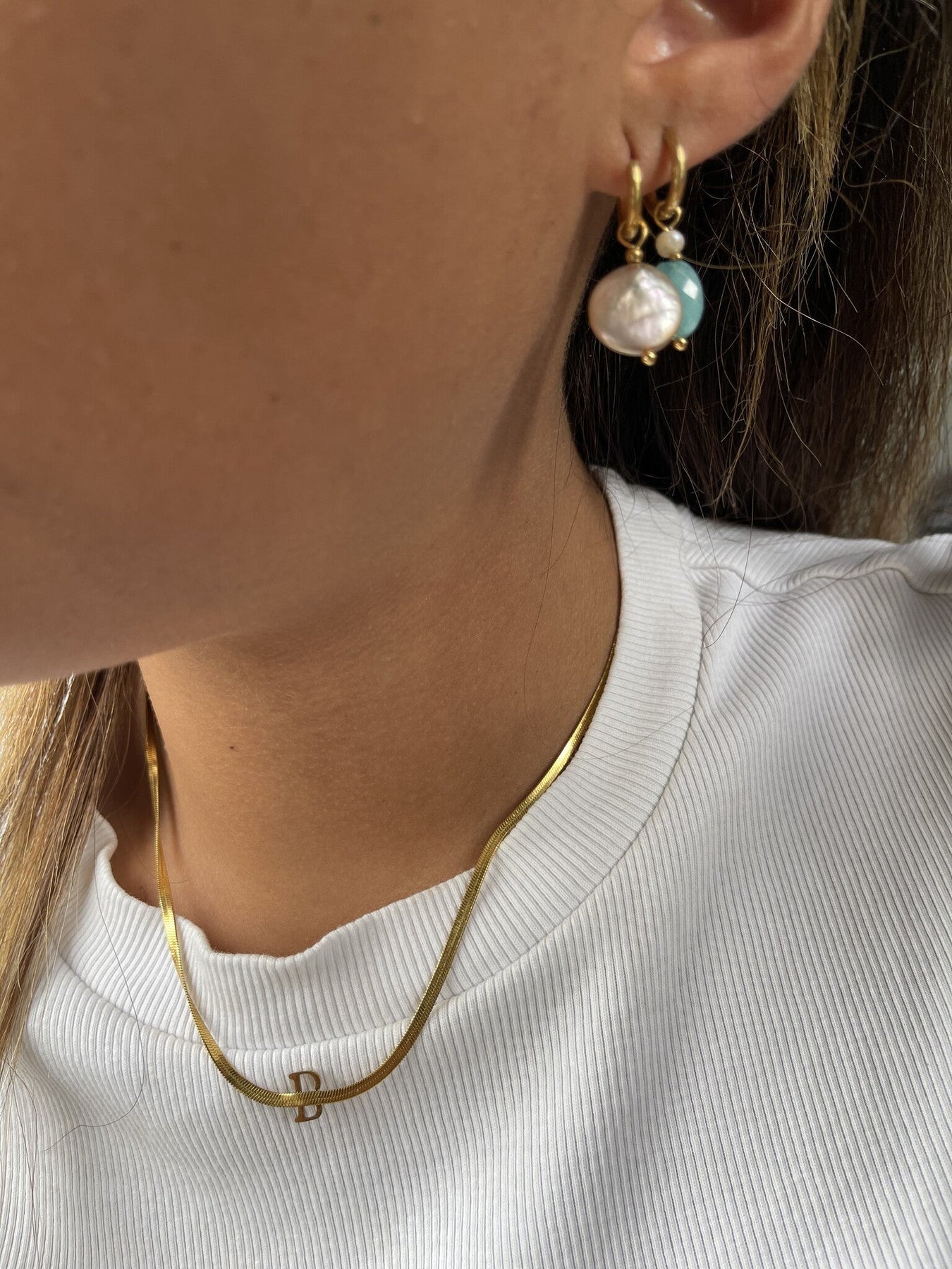Oorbelletjes met natuursteen en zoetwaterparel. De oorbelletjes zijn gemaakt van hoogwaardige kwaliteit stainless steel.